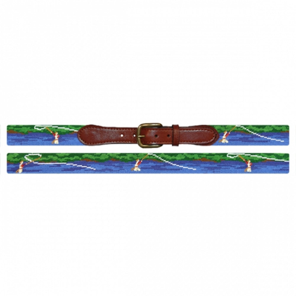 Smathers & Branson Fly Fishing Scene Needlepoint Belt