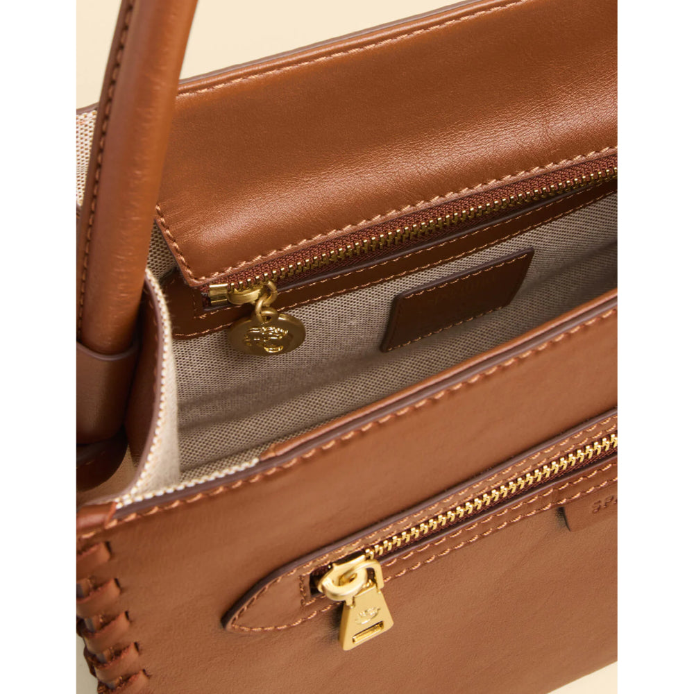 Materials: Premium, top grain saddle leather. Woven cotton blend interior.