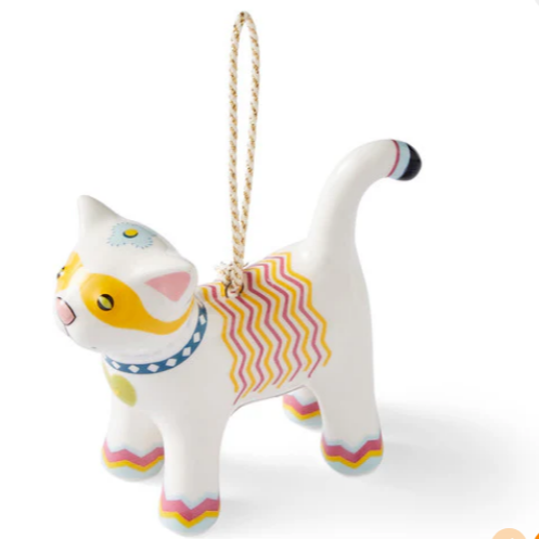 Kit's Patchwork Ornament collection for Spode takes its inspiration from Kit's patchwork animals. This Cat Patchwork Ornament is the perfect gift for your feline-loving friend. Its friendly face decorated in bright patterns and bold colours makes the perfect gift at any time or a stylish addition to your Christmas tree. Finished with white and gold string for hanging and presented in a red gift box, make someone smile this festive season with this playful ornament.