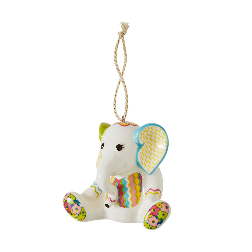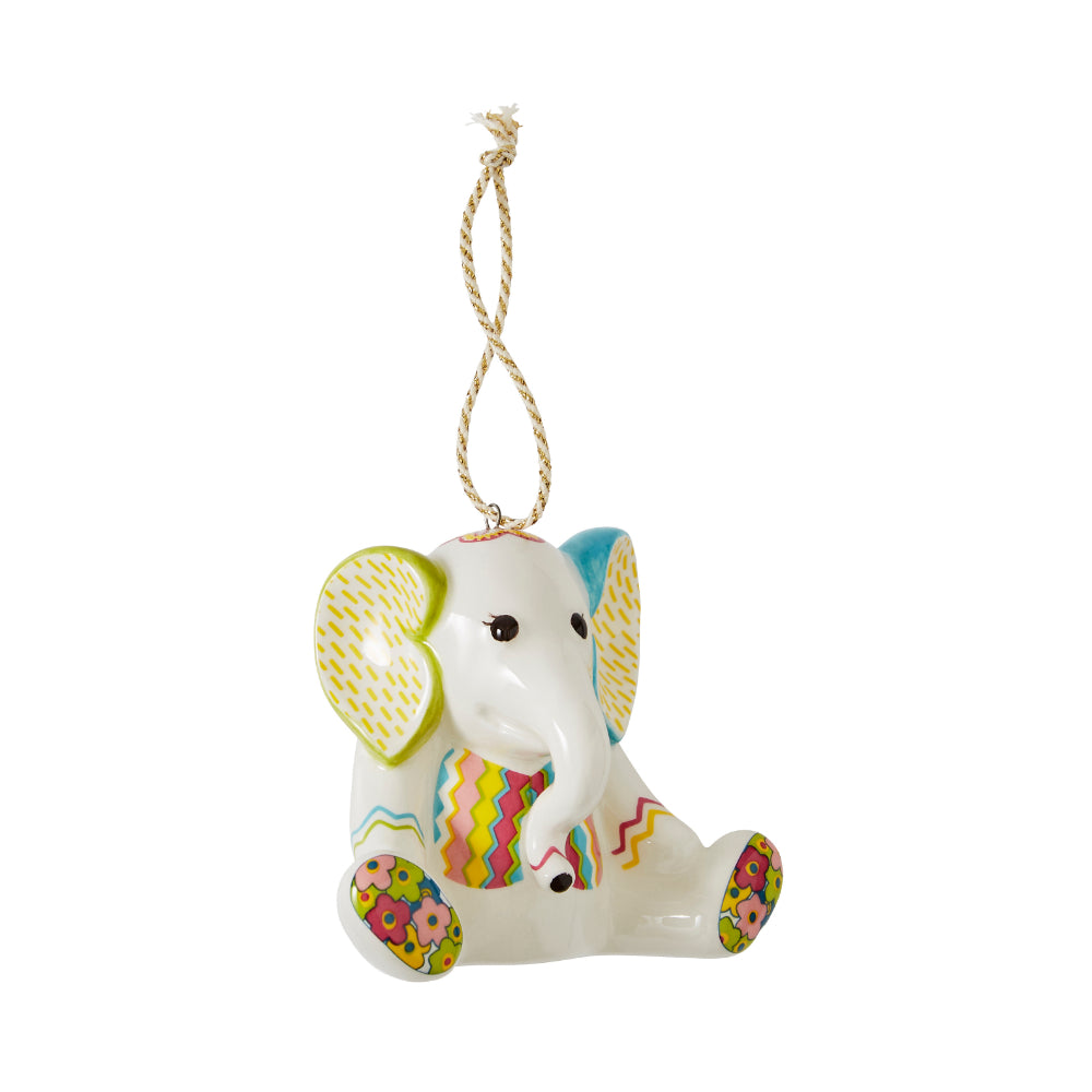 This colourful ornament from the Christmas Doodles collection is inspired by Kit’s collection of lovable patchwork animals created from off cuts and recycled fabrics. The Jambo Elephant Patchwork ornament is designed with a mix of geometric and florals creating a playful and eclectic ornament. A gold ribbon is included for hanging on a tree. Presented in colourful gift packaging, this whimsical ornament is ready for gifting.
