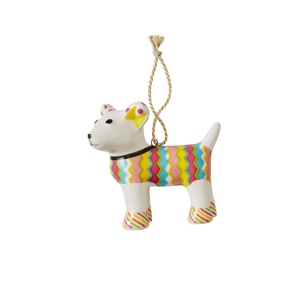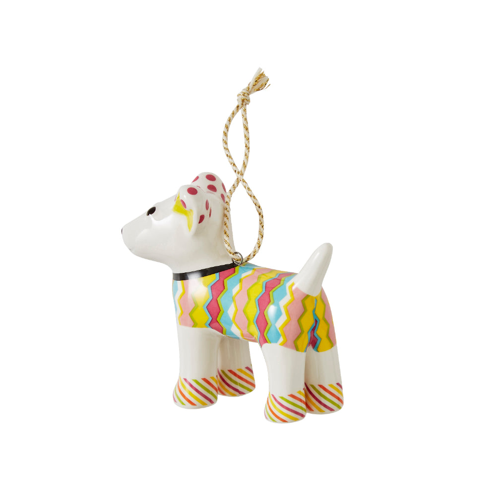 Kit’s collection of colourful patchwork stuffed animals is the inspiration for the Christmas Doodles Patchwork ornament collection. This Tiffany Pooch Patchwork ornament is designed with a mix of patterns emulating the off cuts and recycled fabrics of the colourful stuffed toys. The porcelain ornaments comes with a gold ribbon for hanging. Presented in colourful gift packaging, this whimsical ornament is a great gift for the dog lover.