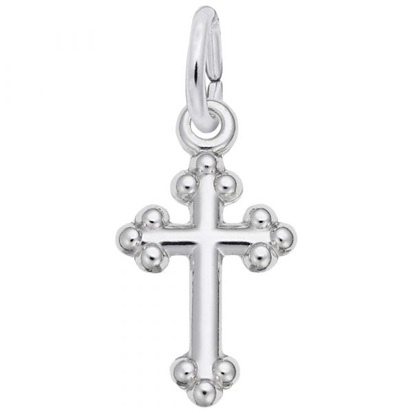 The Bottony Cross Accent Charm is a symbol of Christianity. It can be worn to express religious beliefs and faith in Jesus and God. Available in silver and gold.