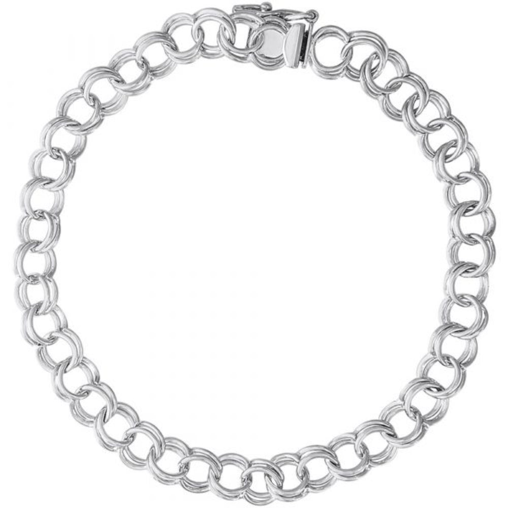 Sterling Silver Double Link Curb Classic Charm Bracelet
