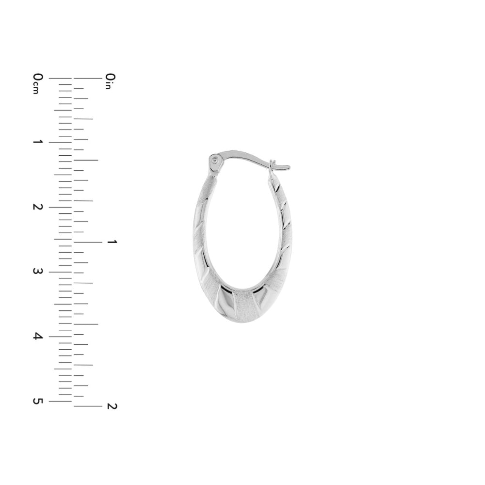Have all eyes on you with a pair of aesthetic hoop earrings. These sterling silver graduated oval hoops feature polished and satin stripes.