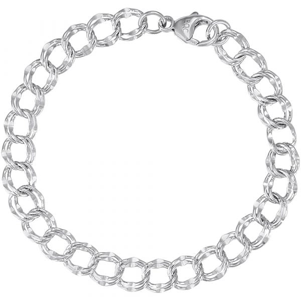 Show off your charms with our Large Double Link Dapped Curb Classic Charm Bracelet With Lobster Claw Clasp. Available in 7 and 8 inch, in silver and gold.