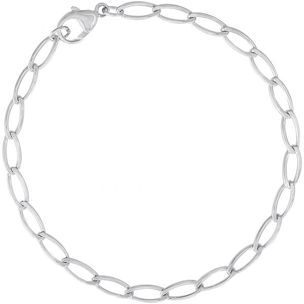 Our Elongated Oval Link Classic Charm Bracelet With Lobster Claw Clasp is sure to please the fashion-conscious. Available in 7 or 8 inch, silver and gold.