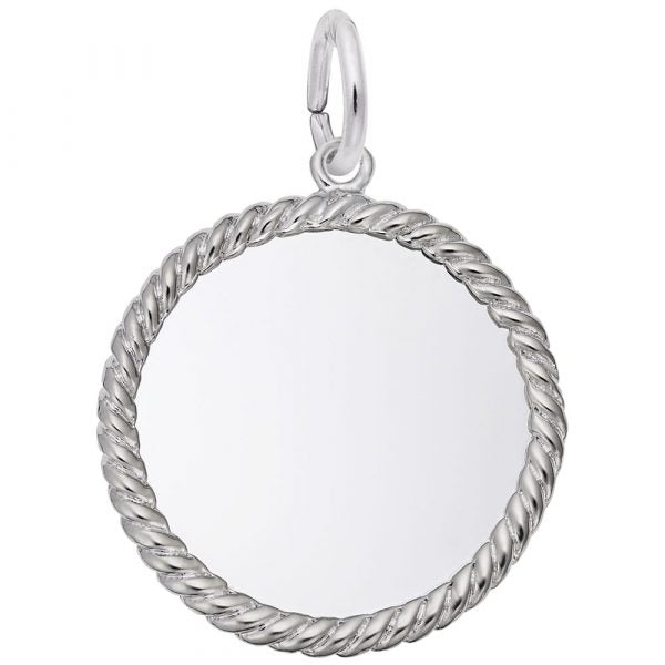 Hold the moment of your personal story with our Small Rope Disc Charm. Inscribe this item and capture the moments you hold dear. Available in silver and gold.