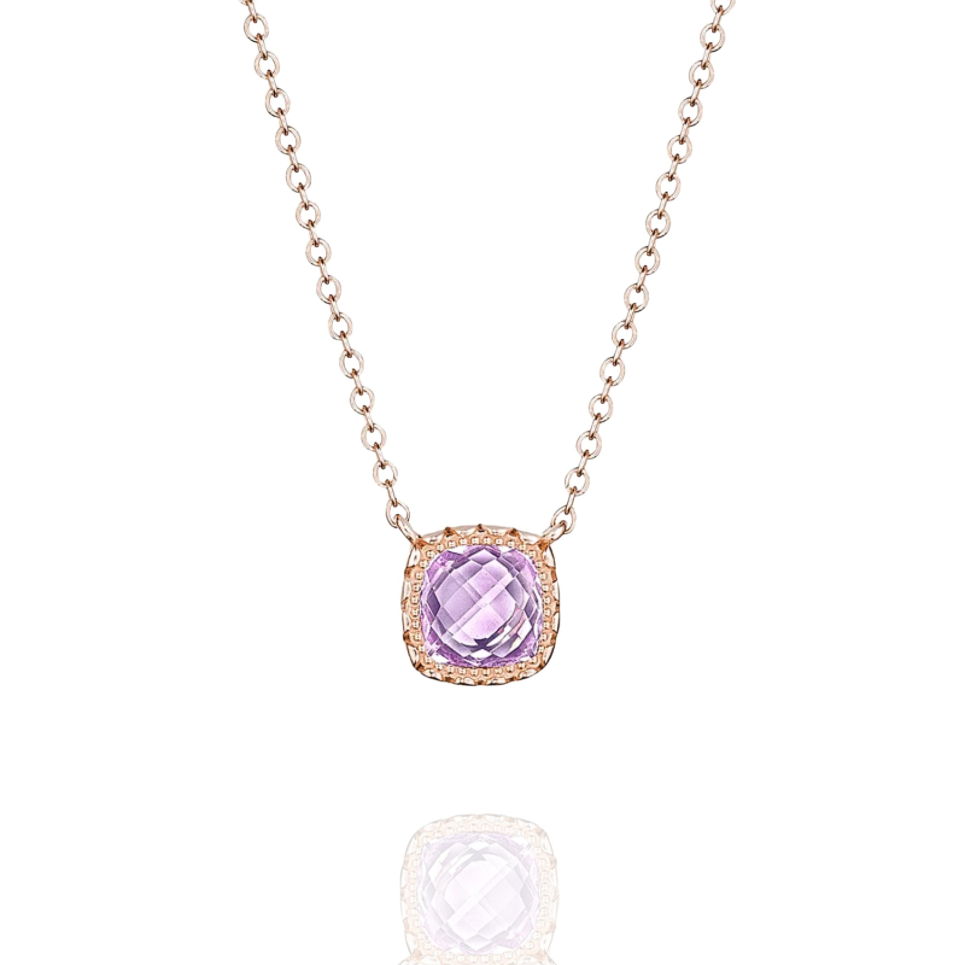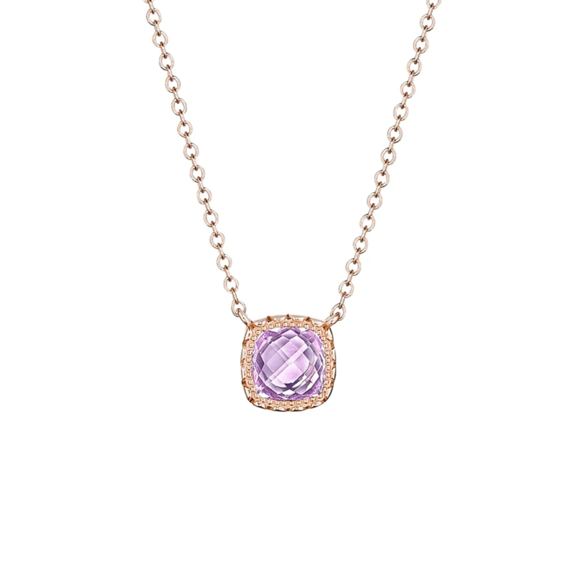 Tacori 14k Rose Gold Petite Cushion Gem Rose Amethyst Pendant Necklace
