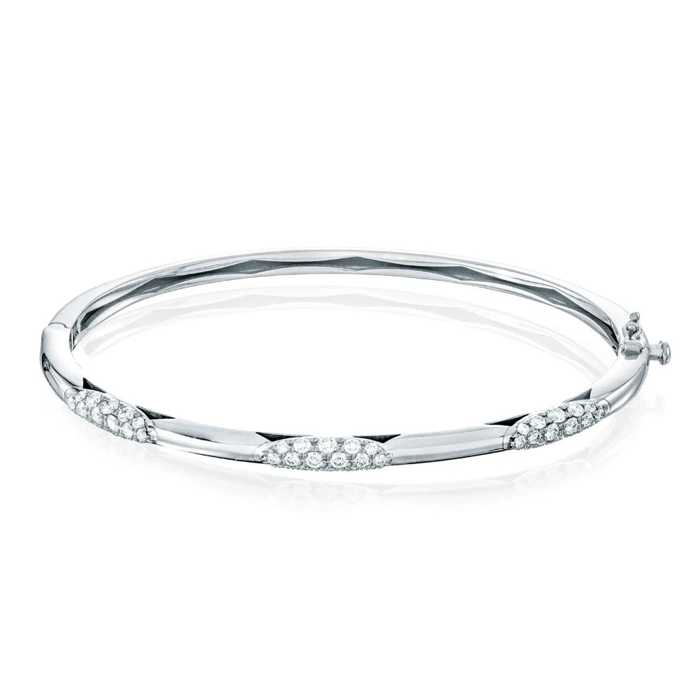 Three ellipses formed by sparkling, Diamond-studded TACORI crescents showcase unparalleled craftsmanship. Set on a delicate band of 18k gold with interior crescent detailing, this bangle is a contemporary and elegant showstopper.