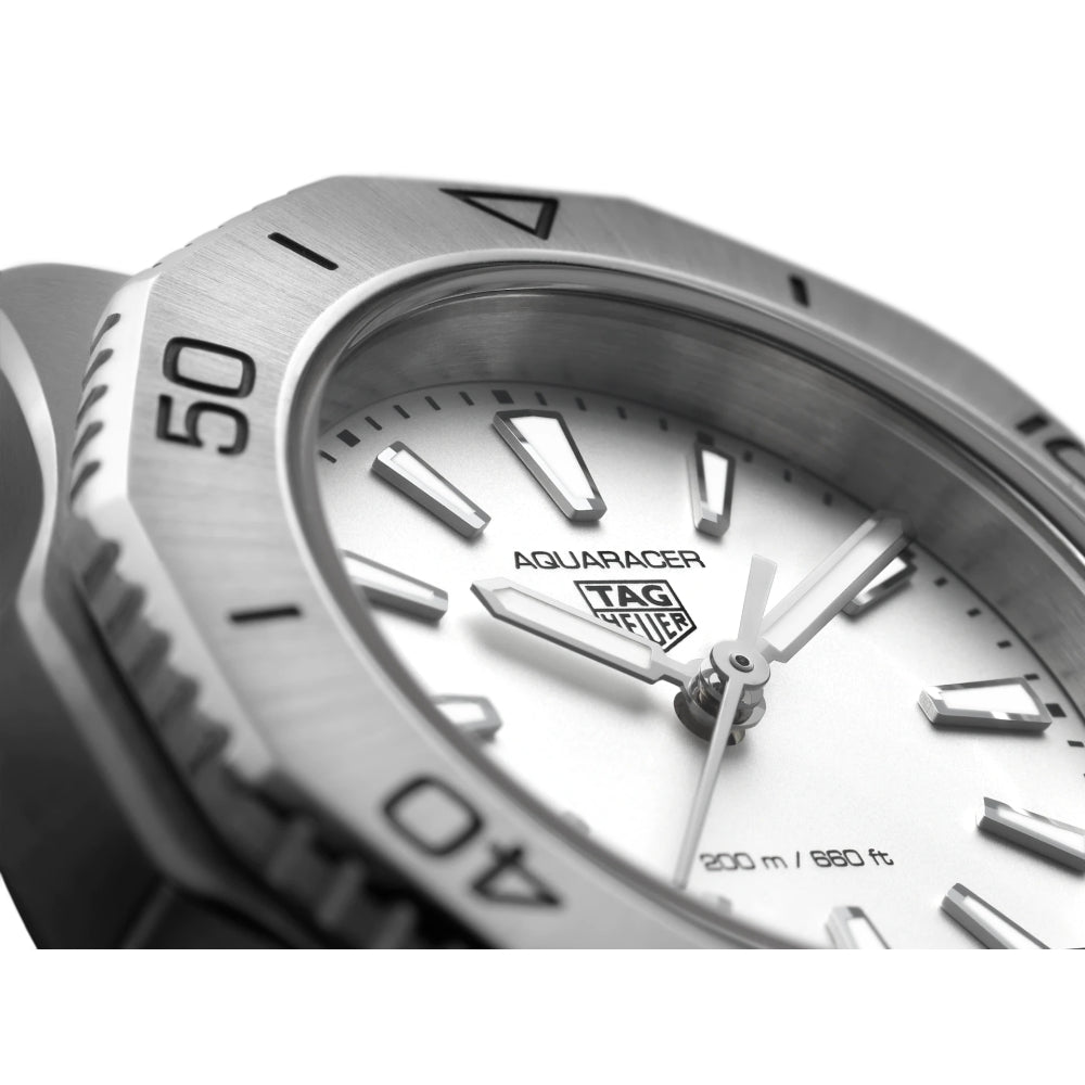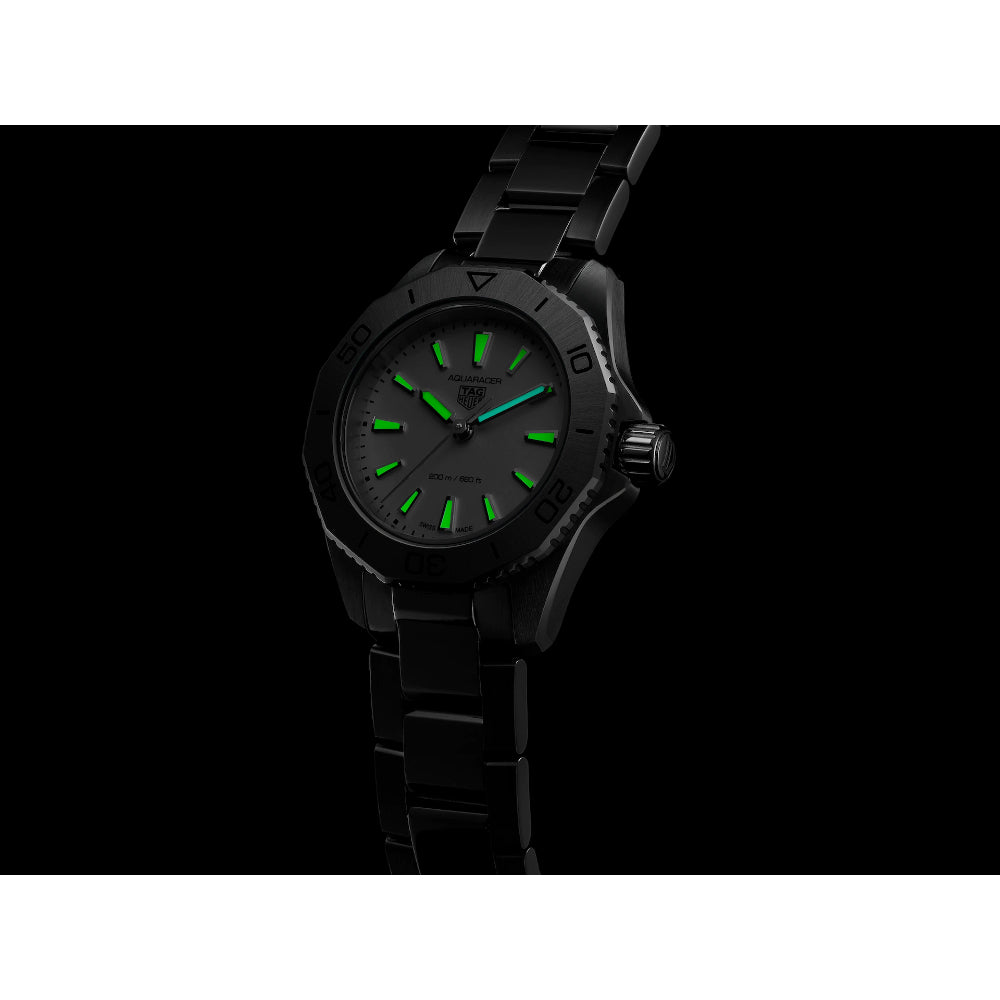 The TAG Heuer Aquaracer is built for everyday use. A true tool watch with versatile style, ready to help you overcome your personal limits. This 30mm model stands out with a shimmering silver dial and unmistakable boldness.