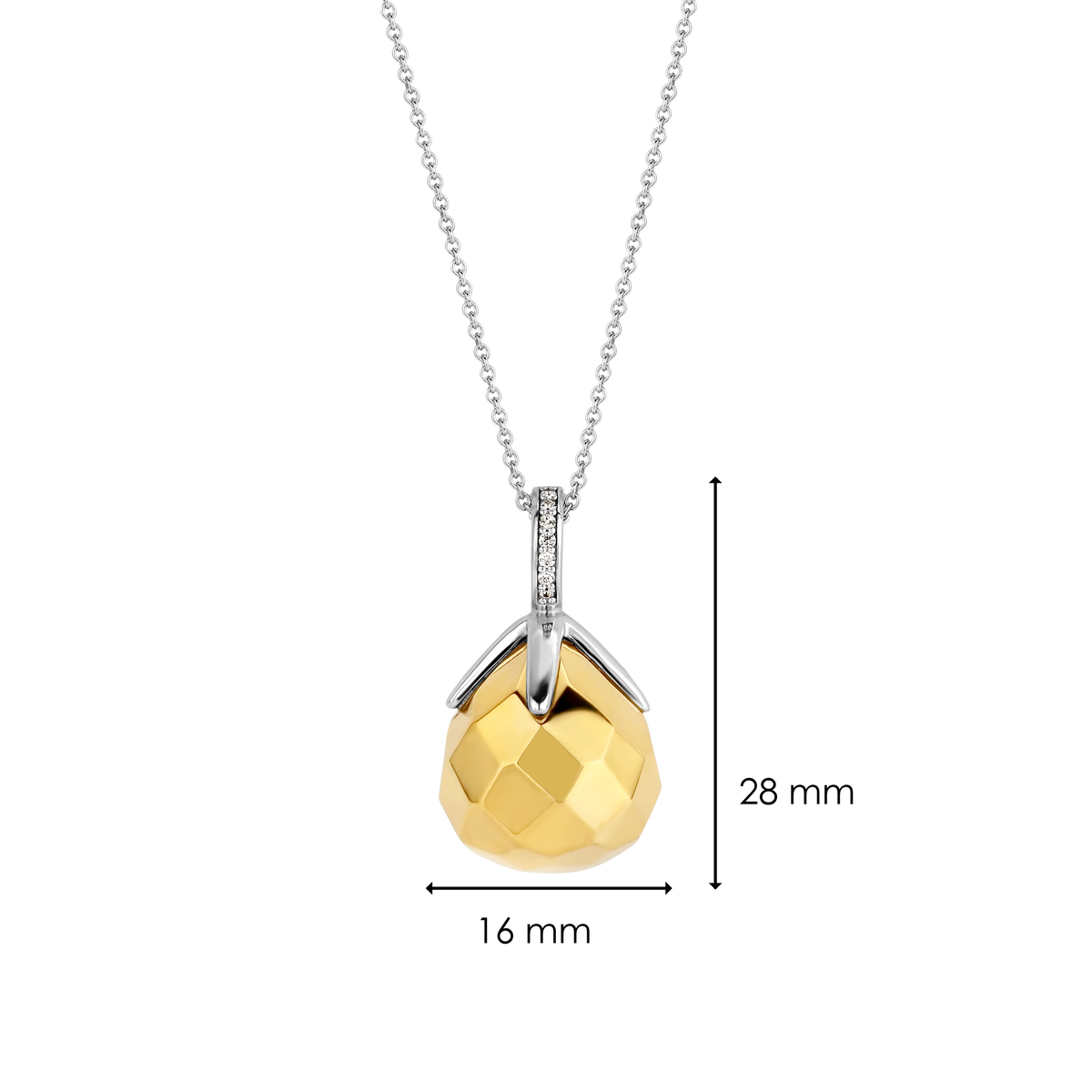 This gold-plated TI SENTO - Milano iconic silver pendant 6791SY has a white zirconia pave on its clip-eye. A classic TI SENTO flowerbud shape in a new fantasy-cut design. An opulent vintage statement piece.