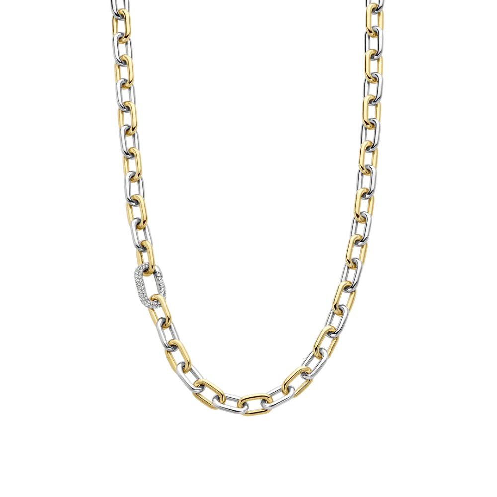 Indulge in the captivating interplay of textures and metals with this TI SENTO gold-plated silver Chain Link Necklace 34065ZY/48. Crafted from 925 sterling silver and plated with platinum for lasting brilliance, this bold necklace features a series of alternating silver and yellow gold-plated chunky links. This necklace is a wearable work of art, a testament to the beauty and versatility of modern jewellery design.