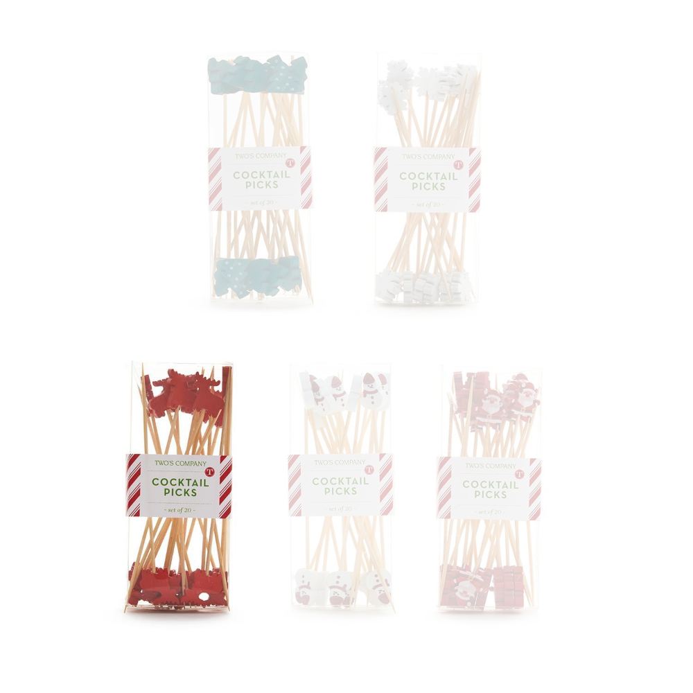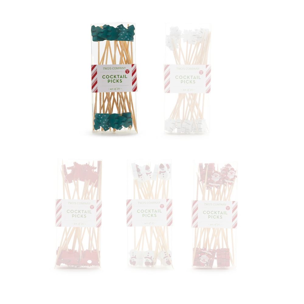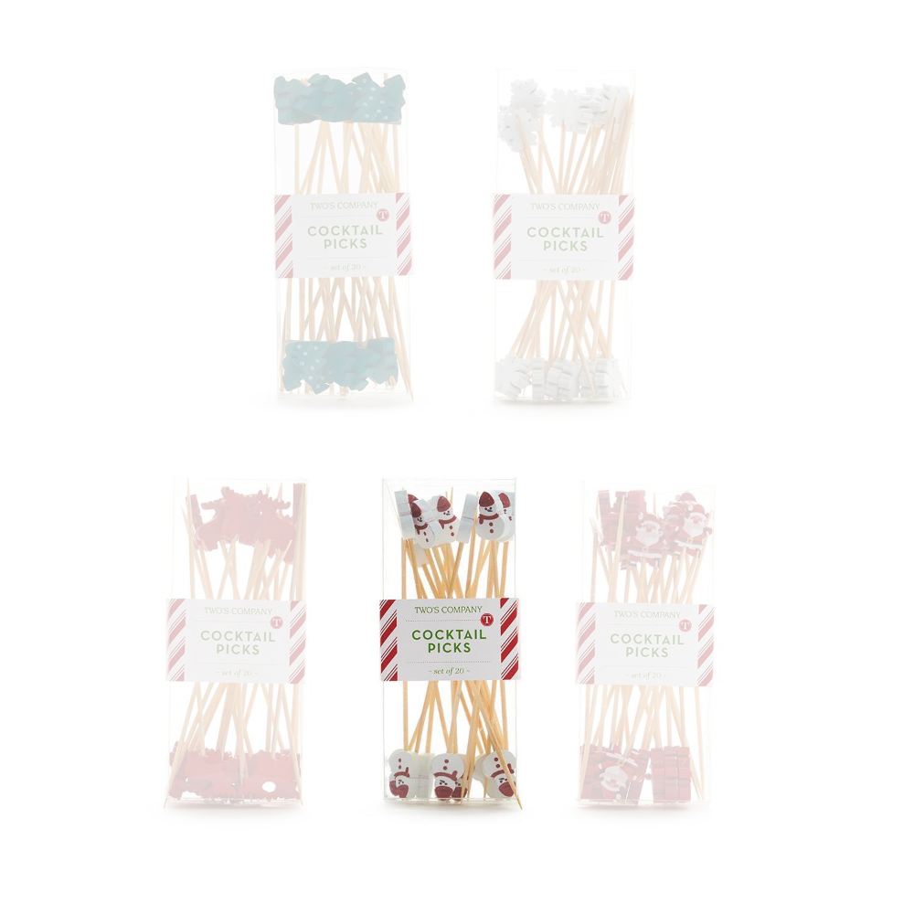 Add the finishing touch to your charcuterie board or hors d'oeuvre spread with these adorable holiday-themed picks. Crafted from bamboo, they feature 5 designs and include 20 picks per box.