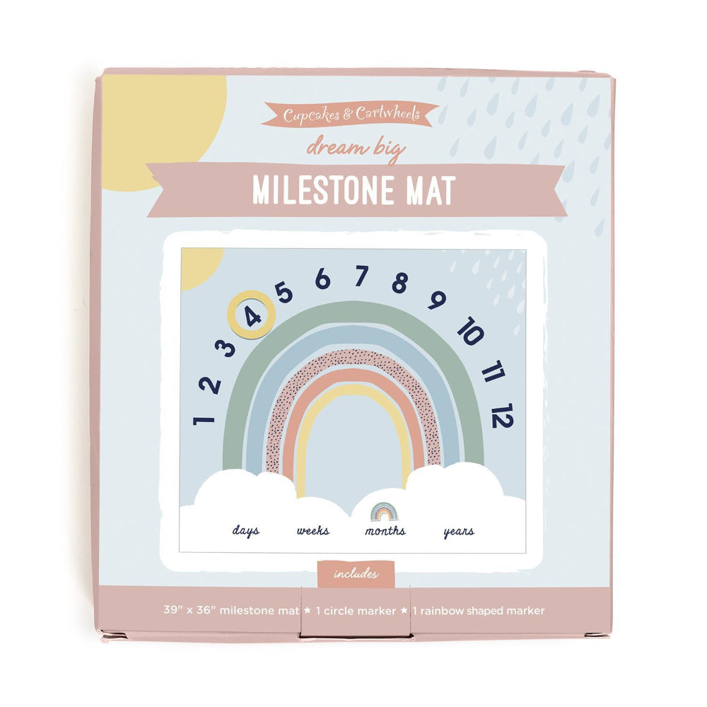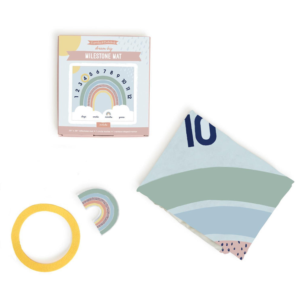 Two's Company Dream Big Milestone Mat / Curtain with Sun and Rainbow Markers in Gift Box