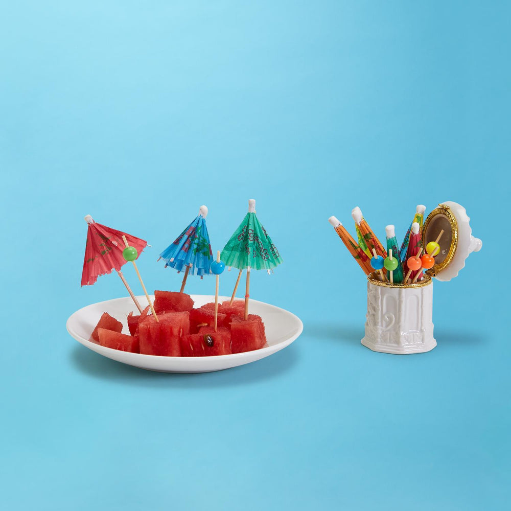 • Jar comes with 10 reusable bamboo picks and 10 umbrella picks