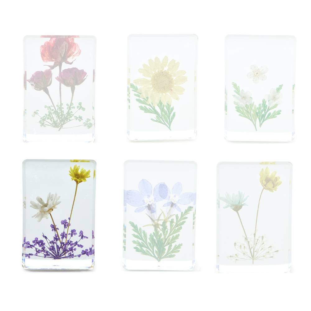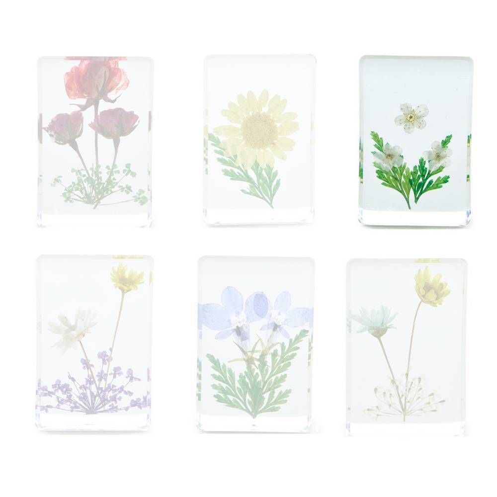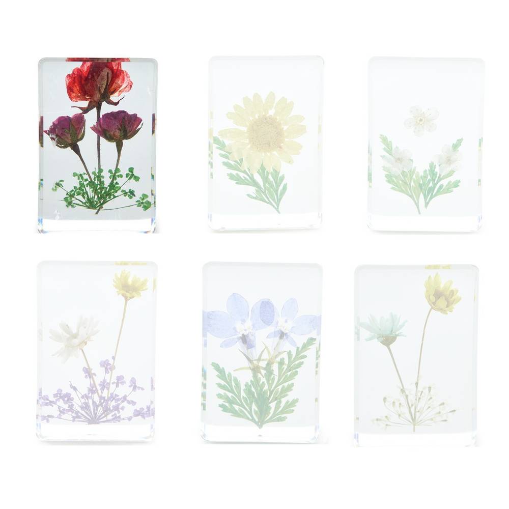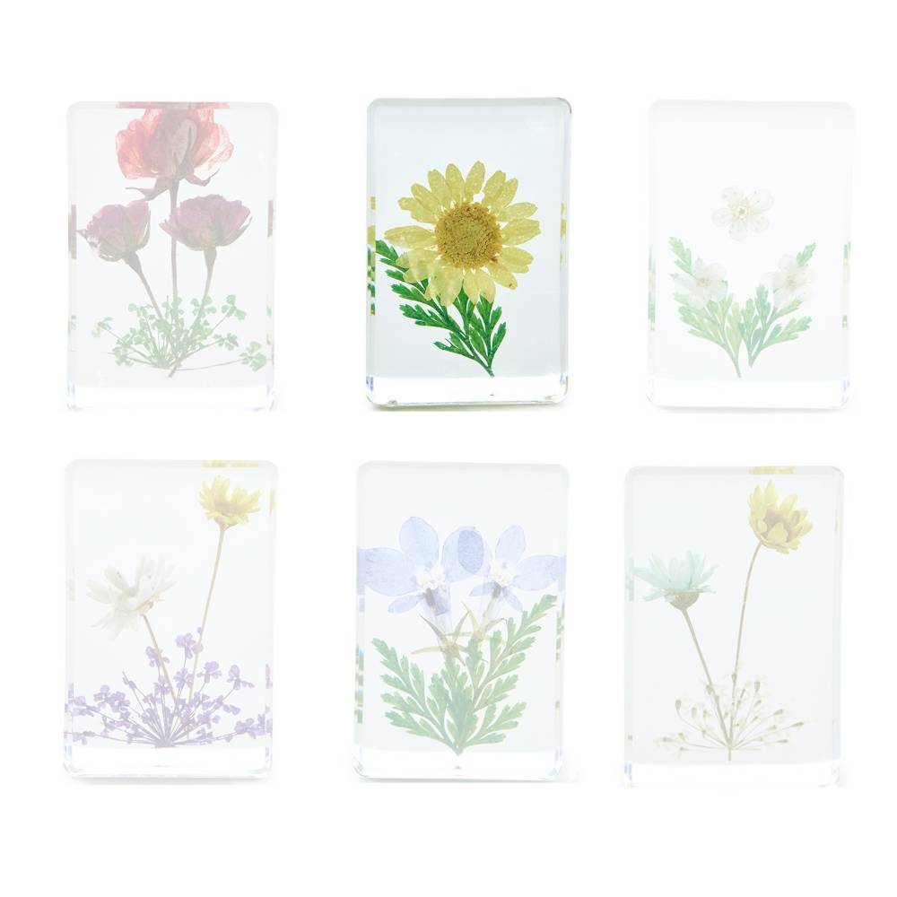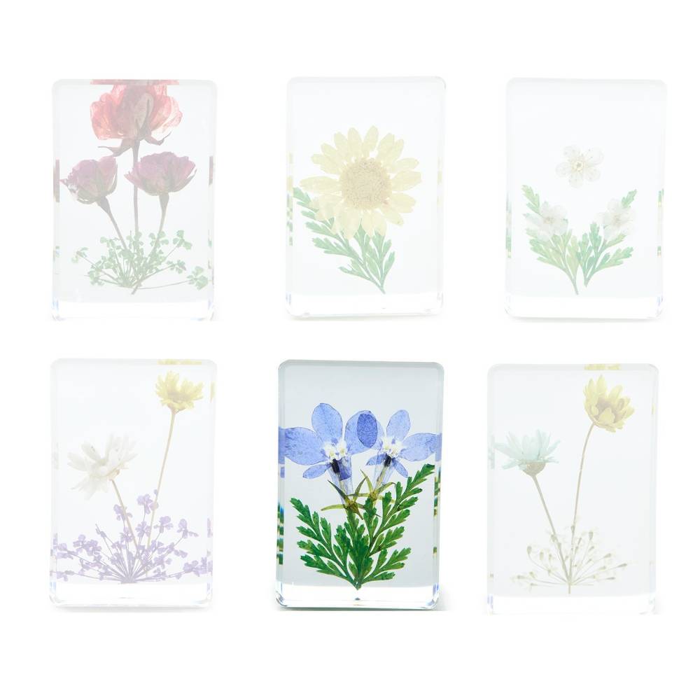 Real pressed flowers preserved in resin, Compact dimensions of 1 1/4" W x 1" D x 2" H ,Comes in a charming gift box for easy gifting, Adds a natural elegance to any room.