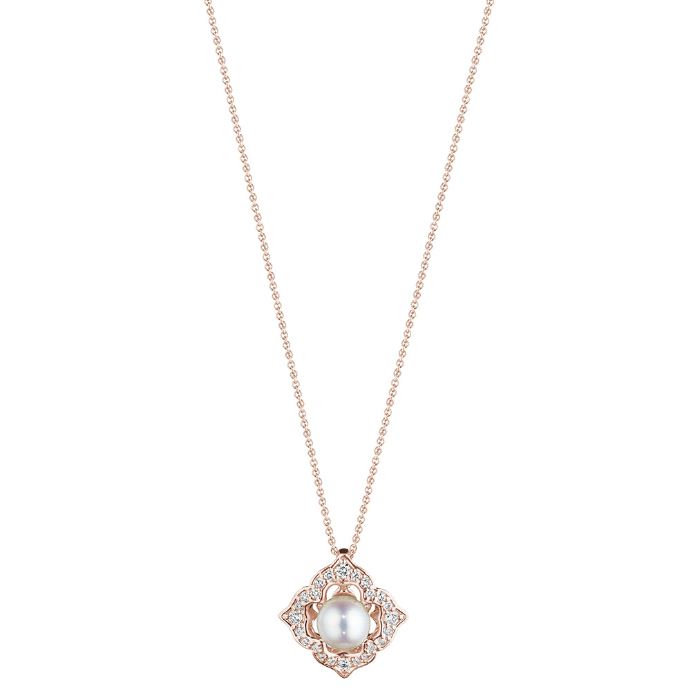 Elevate your ensemble with the timeless beauty of the Verragio 18k Victorian Pearl Pendant Necklace. Combining classic elegance with modern craftsmanship, this exquisite piece is crafted with rose gold and genuine pearl, adding a luxurious touch to your style. Perfect for any occasion, this necklace will be admired for years to come.