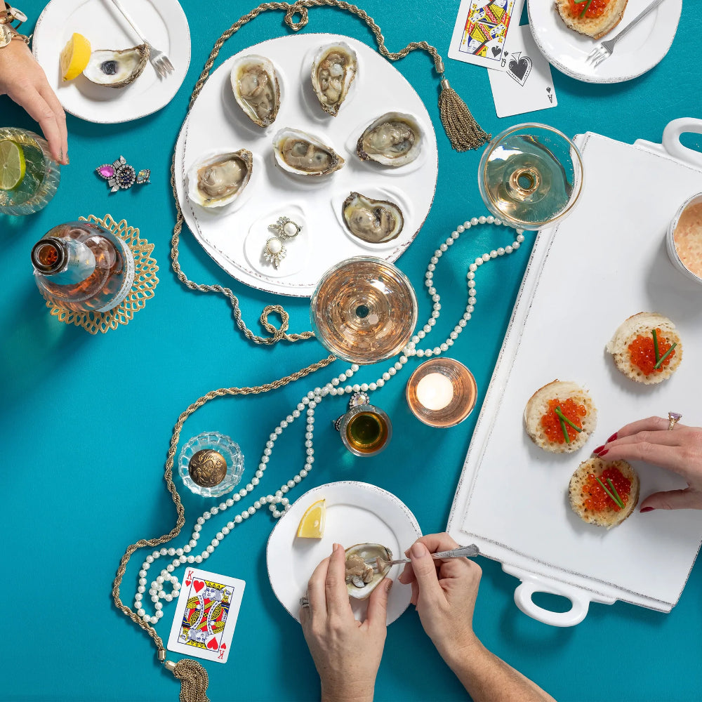 Beloved for its sophisticated simplicity, versatility, and durability, Lastra is our bestselling collection. The understated elegance, clean lines, and unique shape of the Lastra White Oyster Plate make it a timeless choice for your home. Lastra’s design was inspired by the circular wooden slabs used for centuries to create the outer mold in cheesemaking throughout Italy. When fashioned together with twine, the hoop was left with a slight overlap to help maintain the shape of the cheese mold. Maestro molder Stefano Roselli incorporates the overlapping detail into the entire design, from its foot to its rim. A dark dusting on the edges of each piece suggests the ash that was used to preserve these cheeses and highlights each unique silhouette. This timeless piece comes packaged in a limited edition celebration box in honor of Lastra's 10th Anniversary.